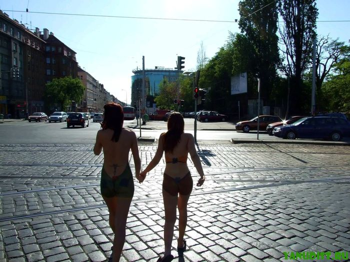 Гуляющие по городу молодые нудистки фото
