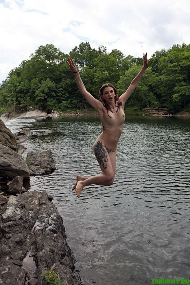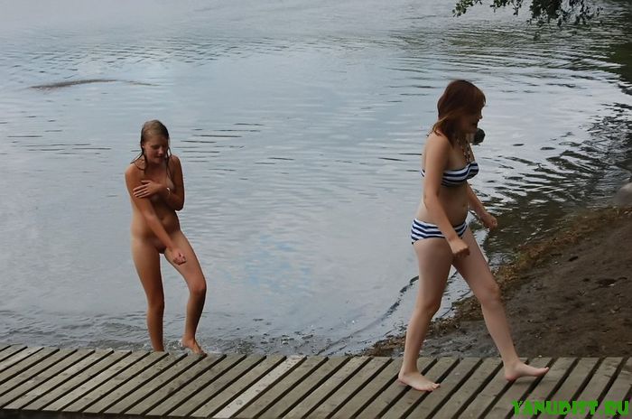 Молодые нудисточки шастают голышом у речки