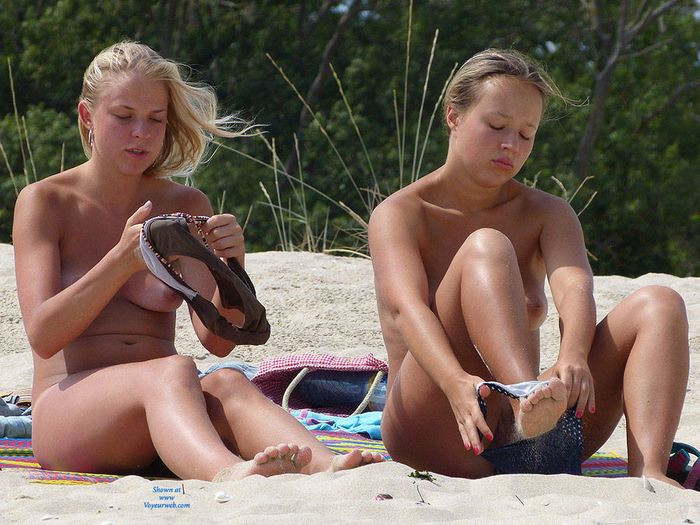 Нудистки на пляже хотят остаться до самого вечера